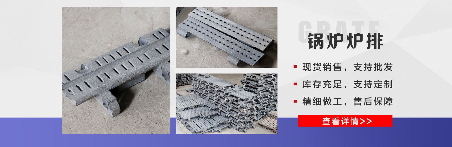 麗新機械配件廠位于“江北水城”之稱的聊城。公司主要銷售:鍋爐爐門,爐篦子,爐排片,鍋爐爐排,省煤器管,鍋爐風帽,鍋爐配件等多種產品,公司堅持以市場為導向、以誠實守信為經營理念,竭誠為廣大客戶服務! 爐排是鍋爐或工業爐中堆置固體燃料并使之有效燃燒的部件。整個爐排主要包括框架和爐排片兩個部分。爐排片通常用鑄鐵制造,組裝后片與片之間保持必要的通風縫隙,并且往往還在爐排下邊設置可以調節風量的分隔的通風室,以便空氣通過縫隙進入燃料層燃燒。燒盡后的灰渣用人工或機械方法排出。爐排有固定式、移動式、往復式、振動式和下飼式等類型。 鍋爐爐排操作實現了機械化,減輕了司爐工的勞動強度。快裝出廠,到使用現場后,裝接閥門儀表,鼓、引風機、煙風管道、省煤器、除塵器、出渣機。上煤機及水電路等即可運行,且具有起動生火快等特點?! 」緫{借豐富的規格品種,過硬的質量,合理的價格,完善的服務,不斷地受到新老用戶及業內人士的肯定和信任,我們本著及用戶之所及,想用戶之所想的服務宗旨不斷地拼搏,進取,在此對多年來支持我們的各行各業的新老朋友表示由衷的感謝! 我公司的理念:“誠信、合作、互利、雙贏”!以最大的努力滿足客戶的需求。...